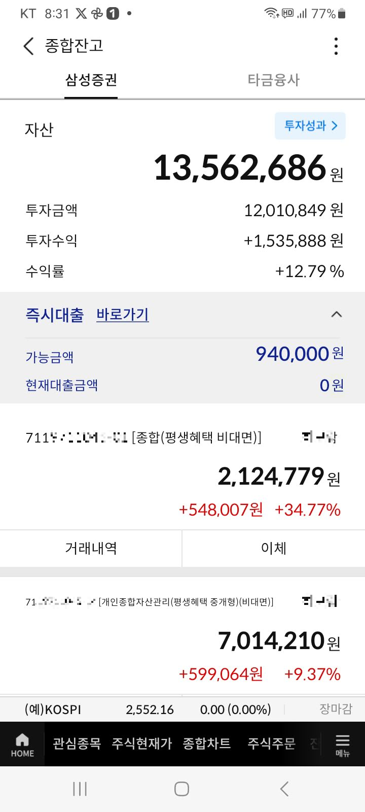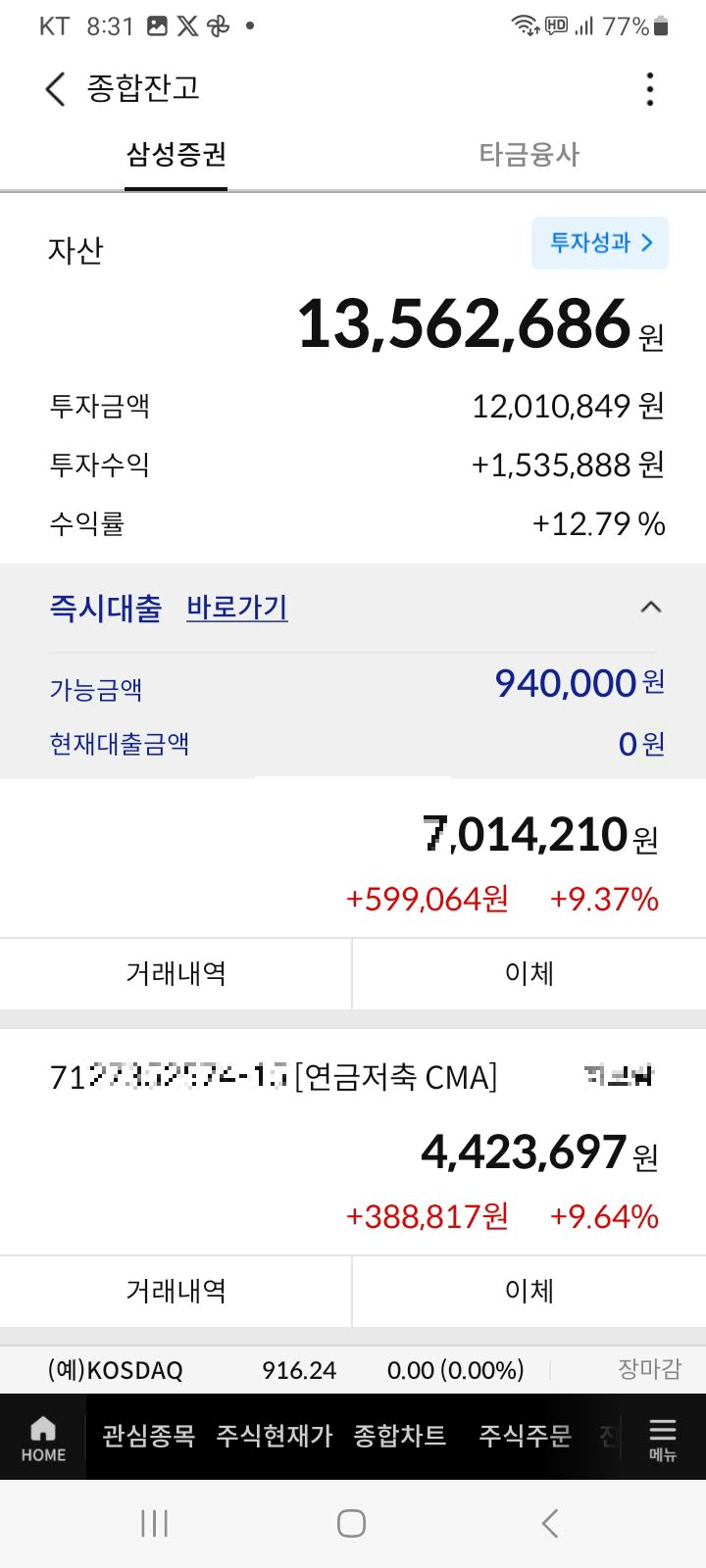 거기다 종합 계좌에서