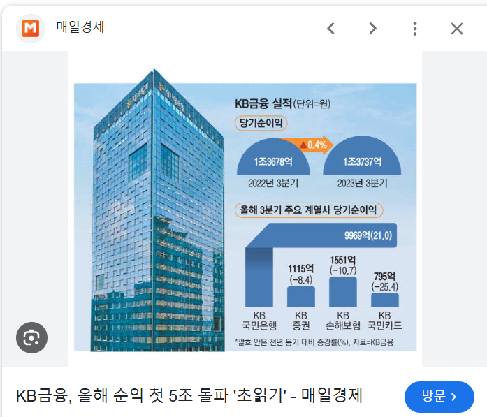 KB 금융도 큰 타격을 받은 모양.