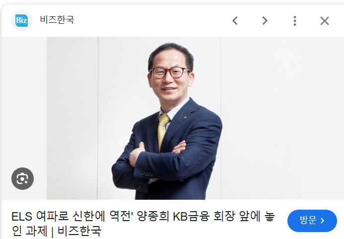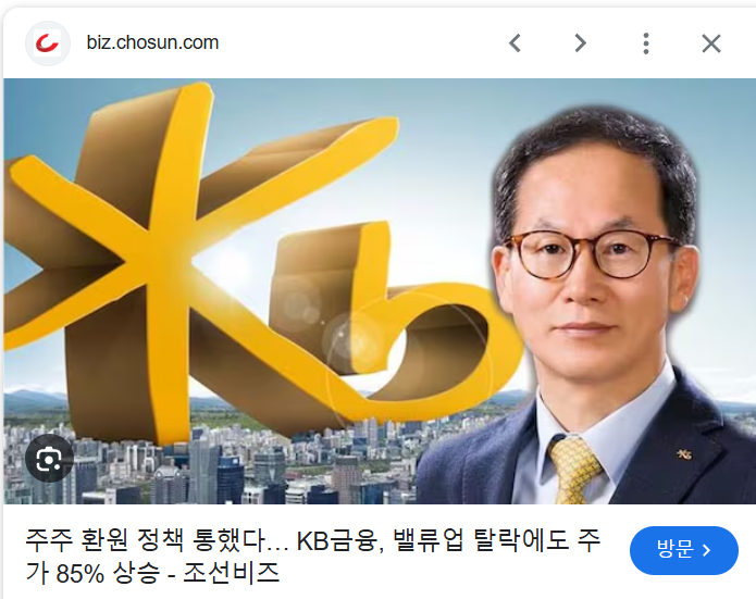 밸류업에 대한 기대로 KB금융 주식은 2024년에 엄청 올랐었는데, 계엄으로 15%대 폭락을 했다고 한다.