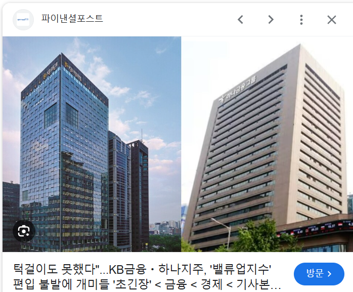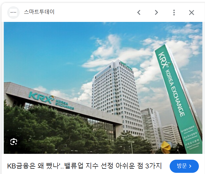 밸류업 지수에 포함되는 데 실패했던 KB금융이