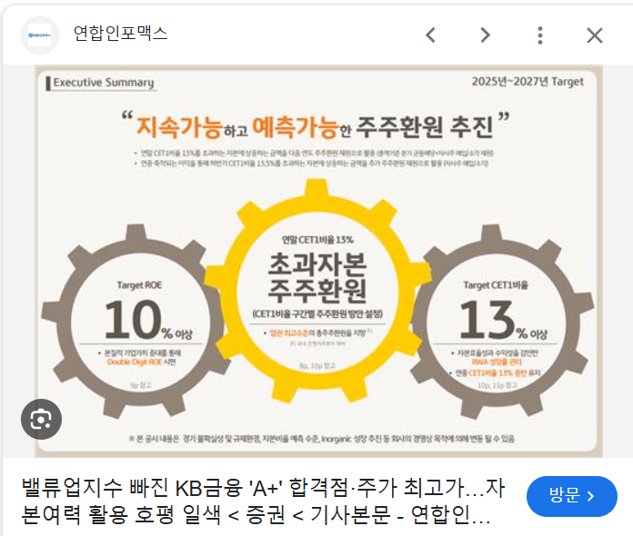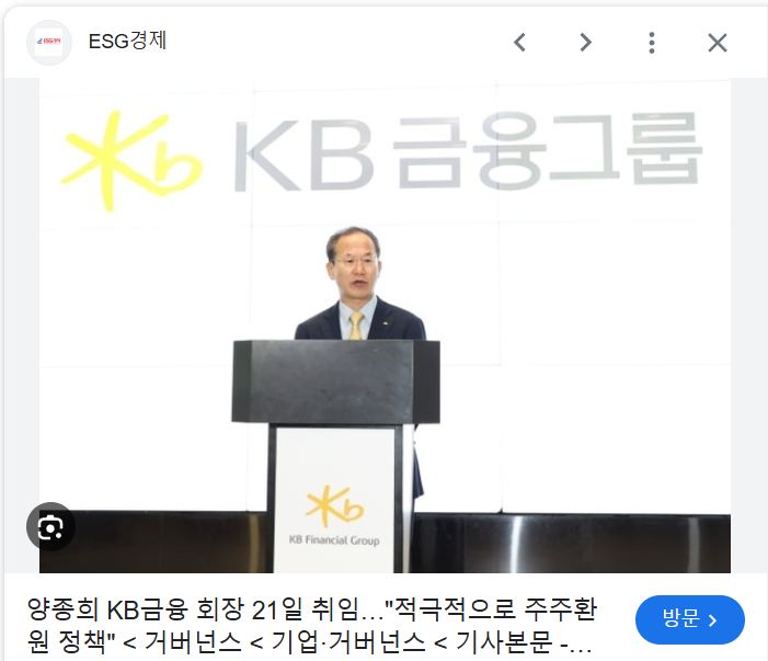아쉽게도 밸류업 지수에는 들어가지 못한 KB
