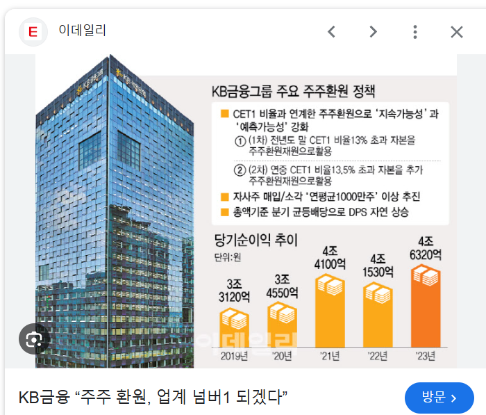 2024년에 정말 많이 오른 KB금융.